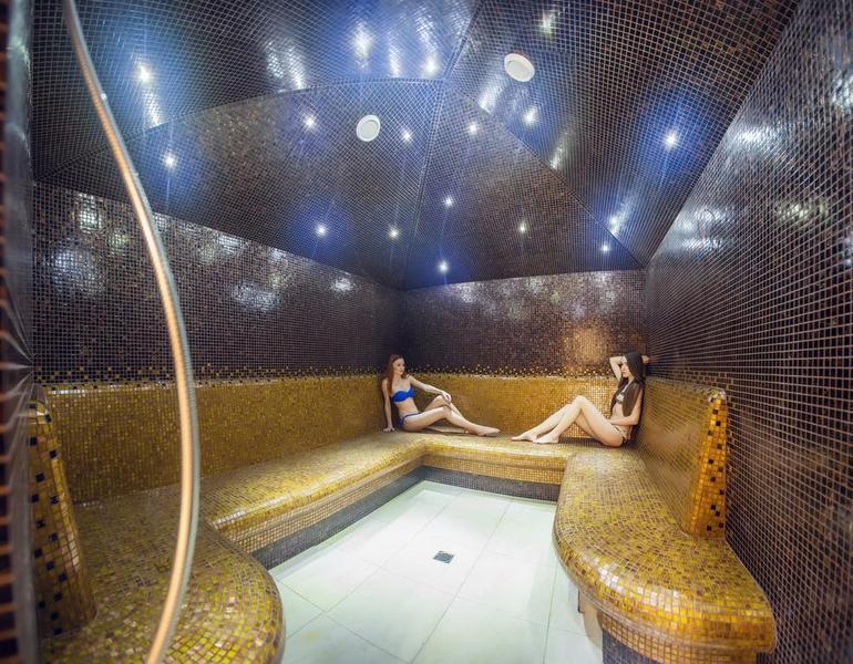 Dwa kryte baseny, restauracje, bary, centrum fitness, biblioteka, plac zabaw i pokój dla dzieci, bankomat, kantor wymiany walut, różnego rodzaju sklepy, stadion, parking, scena koncertowa, tenis stołowy, bilard, obsługa konferencji, jazda konna, bryczką, rowerem górskim.